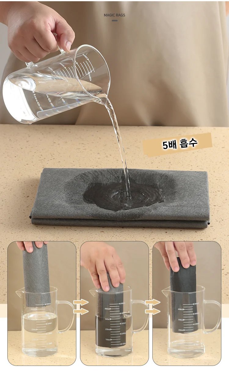 흡수력이 매우 좋아서, 이걸로 닦은 유리는 반짝반짝 빛나고 물자국이 하나도 남지 않습니다!