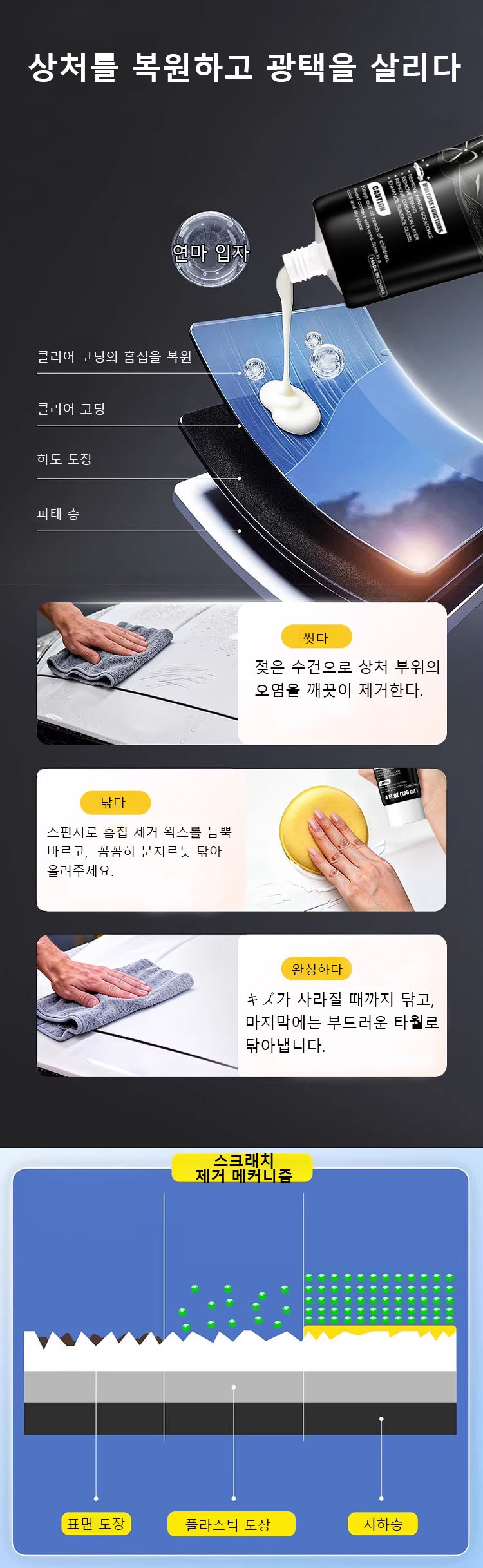 한 번에 긁힘 제거 자동차 도장 흠집 깊은 복원 왁스